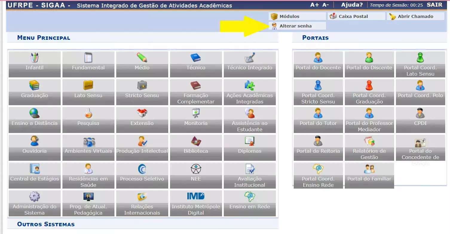 3. Clique em <Alterar senha>, conforme a imagem a seguir:
